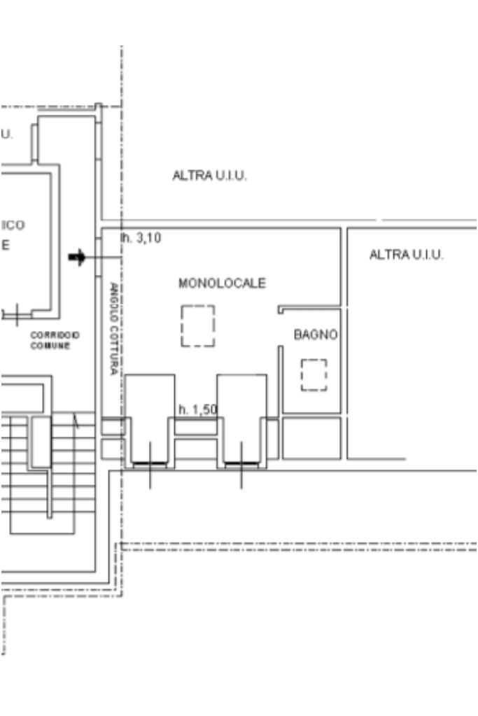 La soluzione è composta dall'ingresso sulla spaziosa zona giorno/notte con angolo cottura ed dal bagno finestrato con doccia.