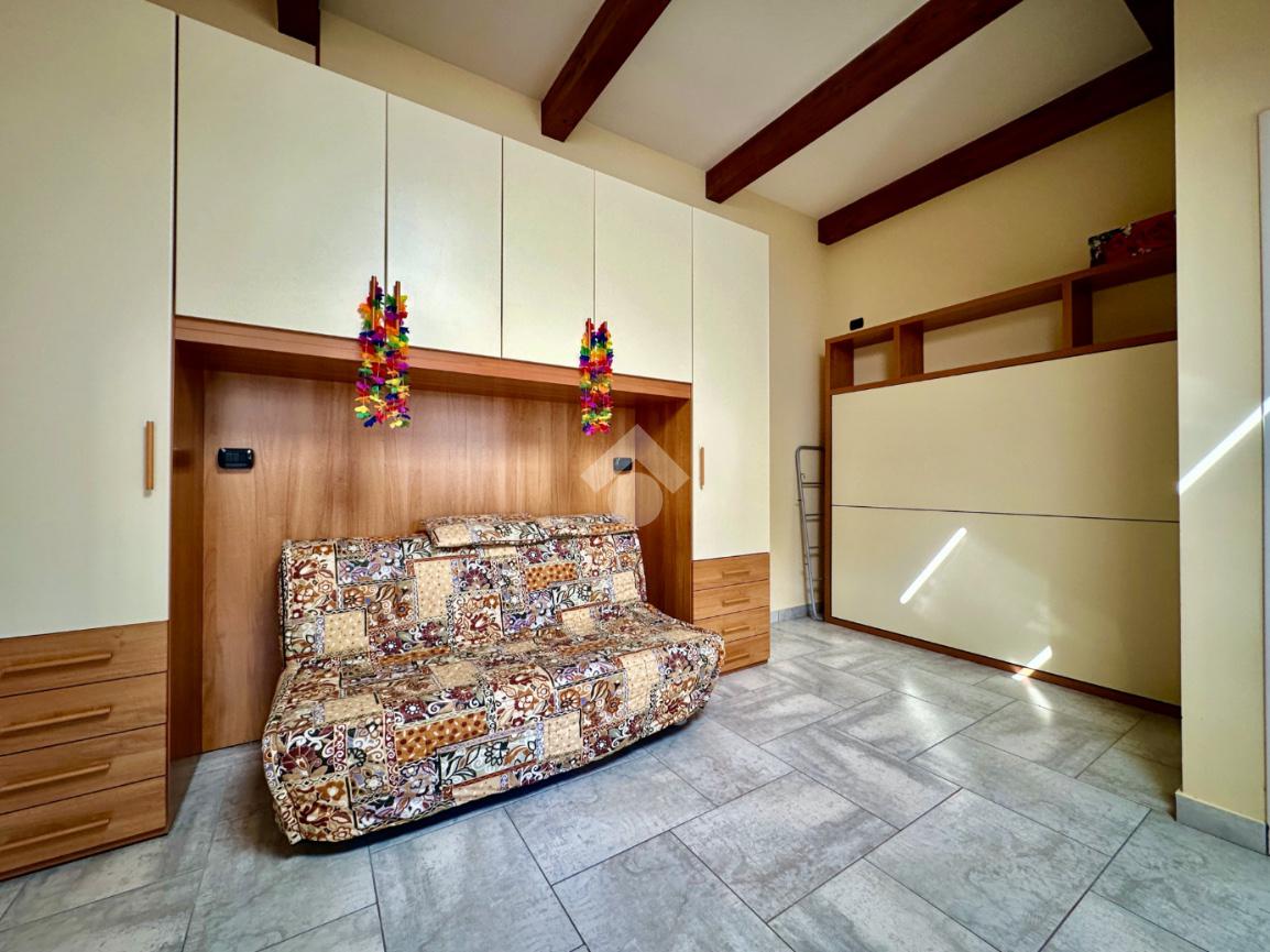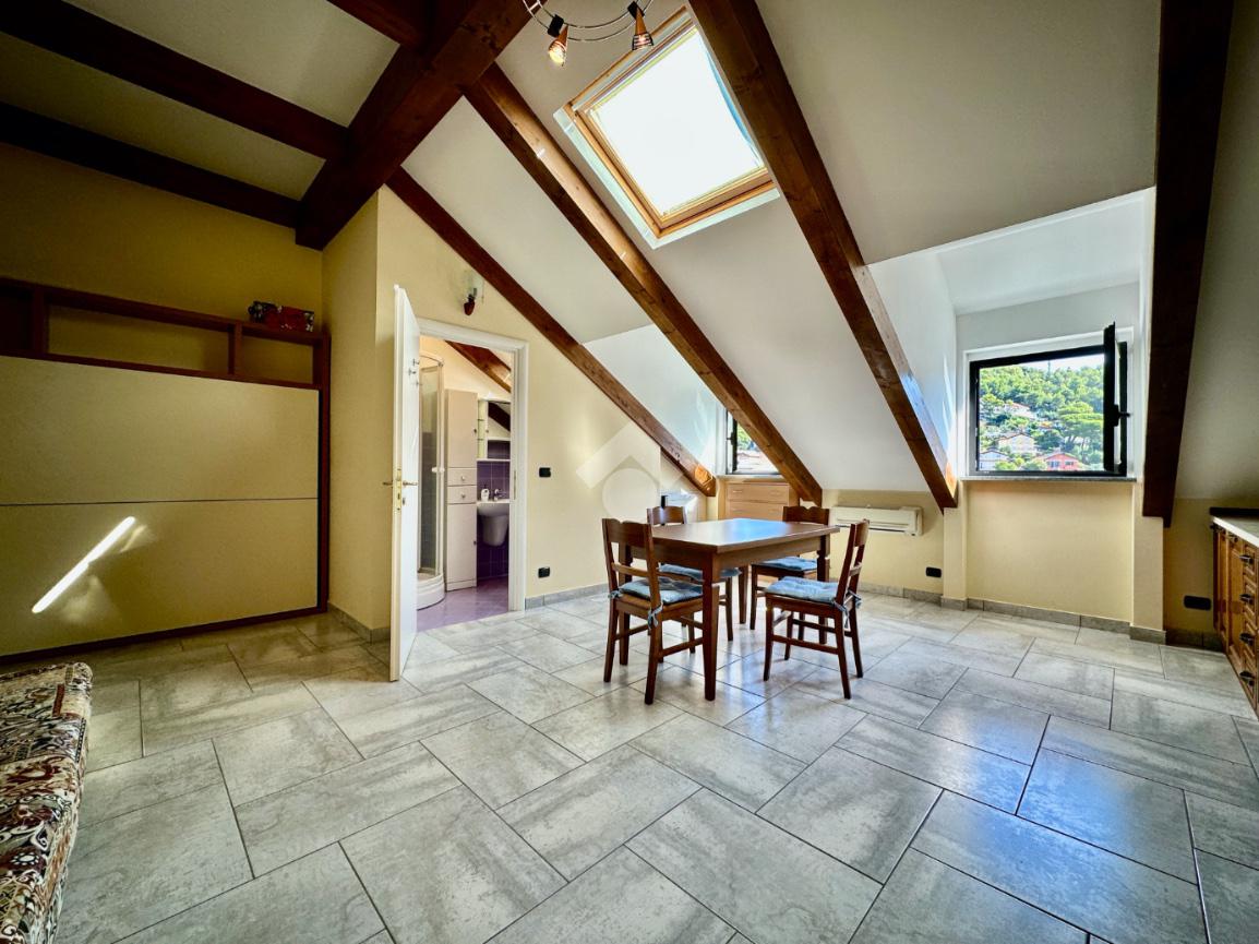 A 750m dalle spiagge, ampio monolocale mansardato ristrutturato a nuovo ed ammobiliata.