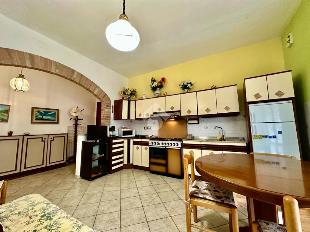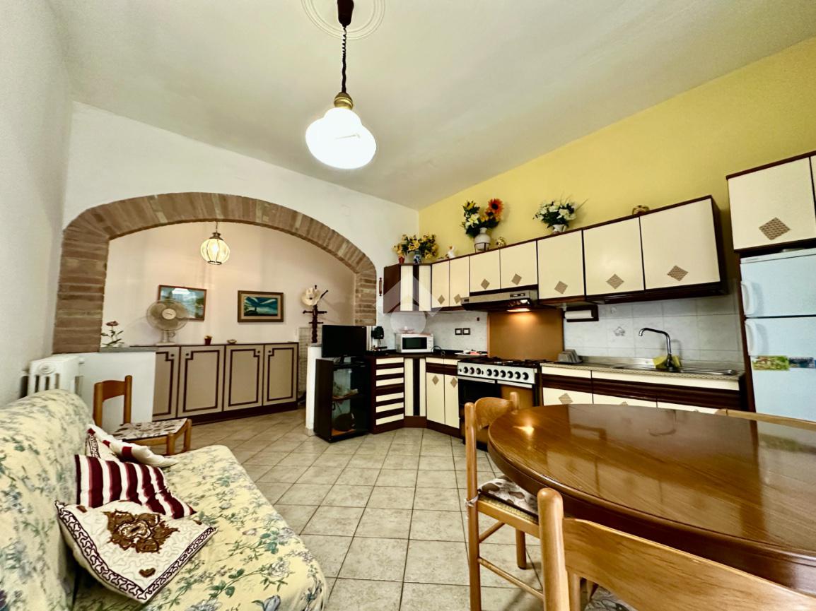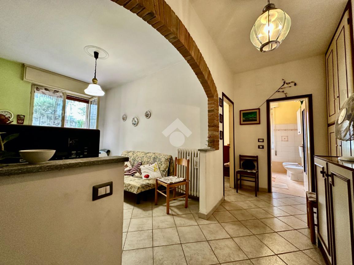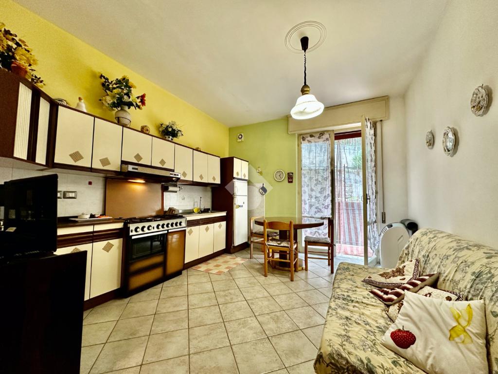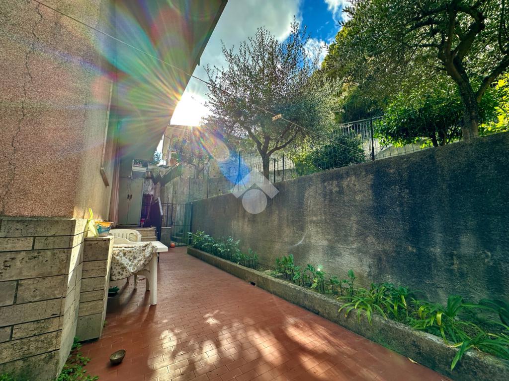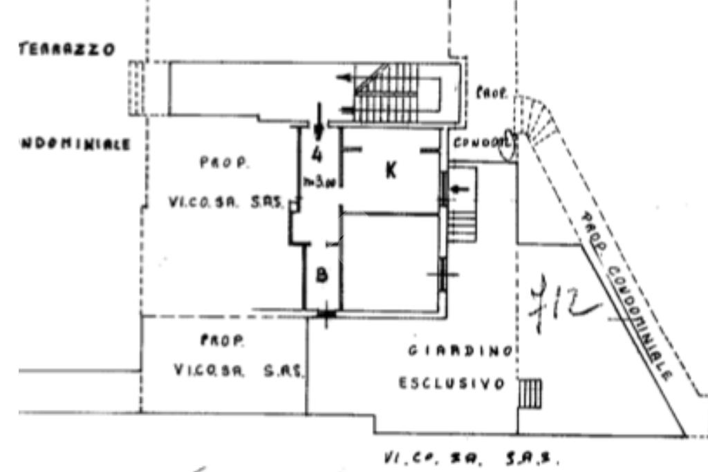 La soluzione presenta l'ingresso sul disimpegno che conduce alla luminosa zona giorno con angolo cottura e sfogo sull'ampio cortile privato disposto su due livelli in parte piastrellato; di seguito troviamo il comodo bagno finestrato con box doccia e la spaziosa camera matrimoniale.