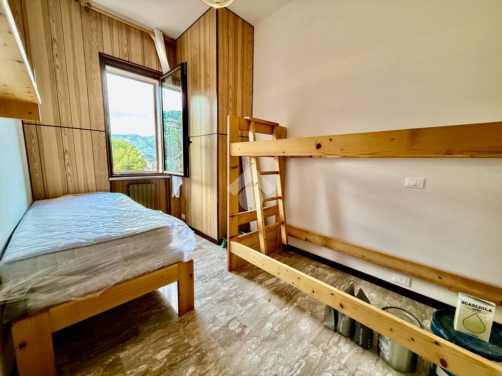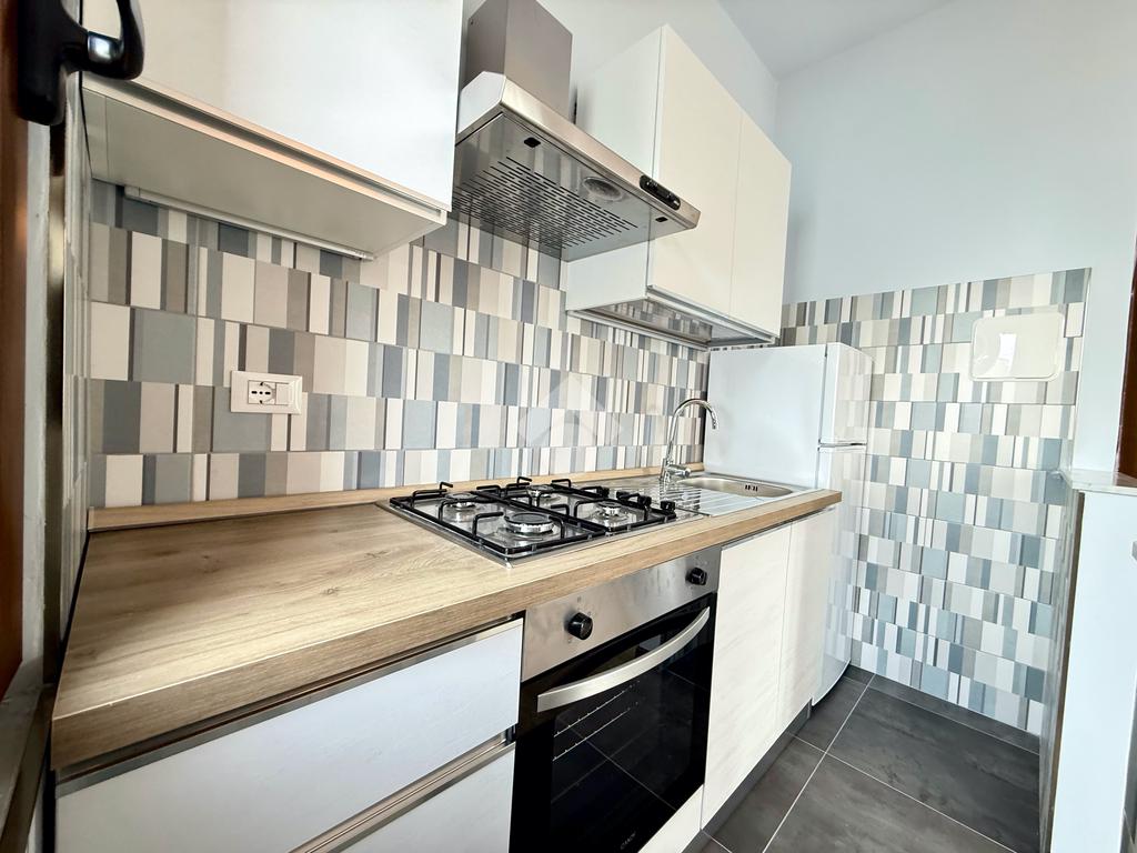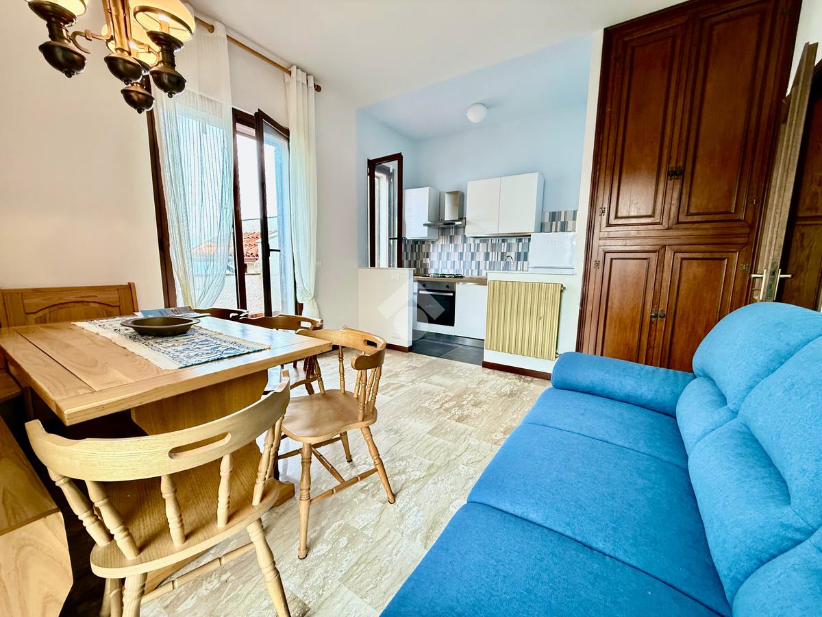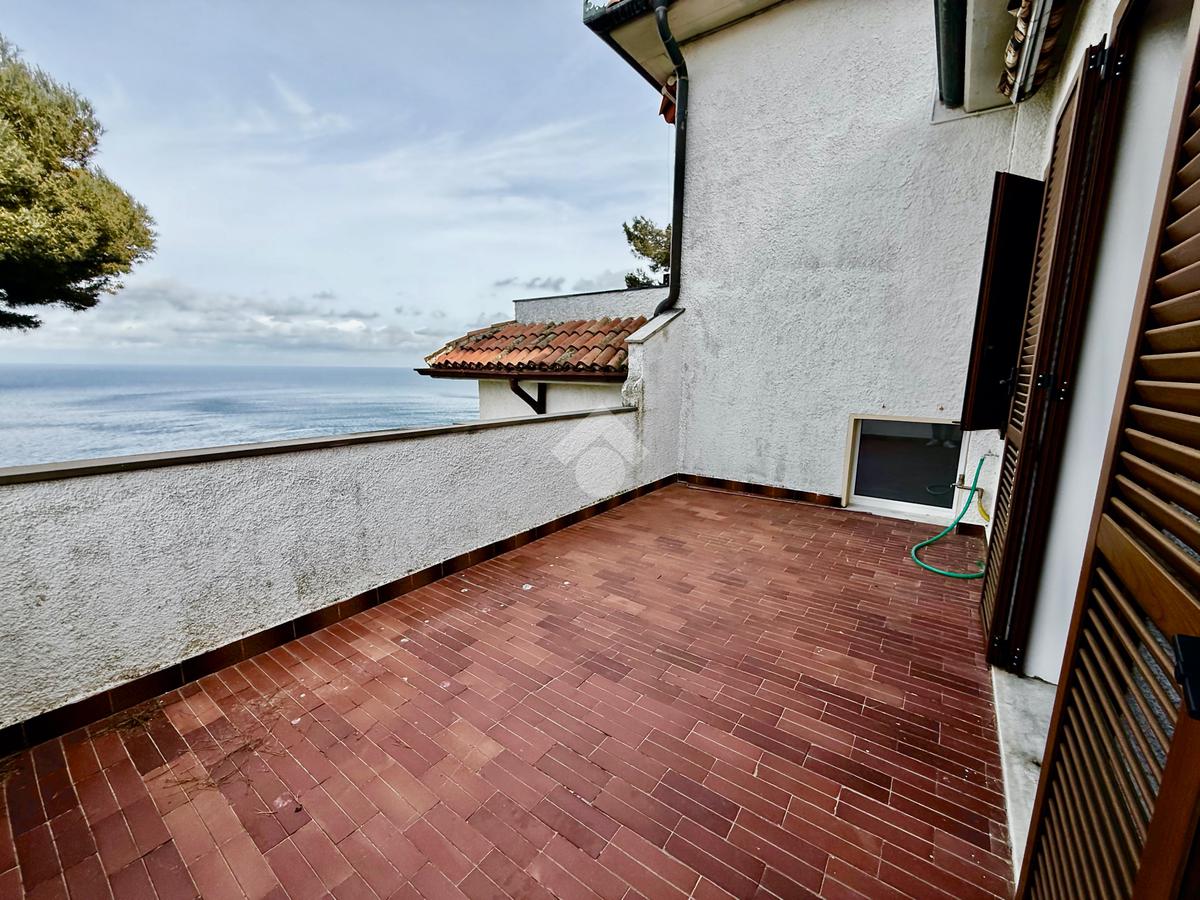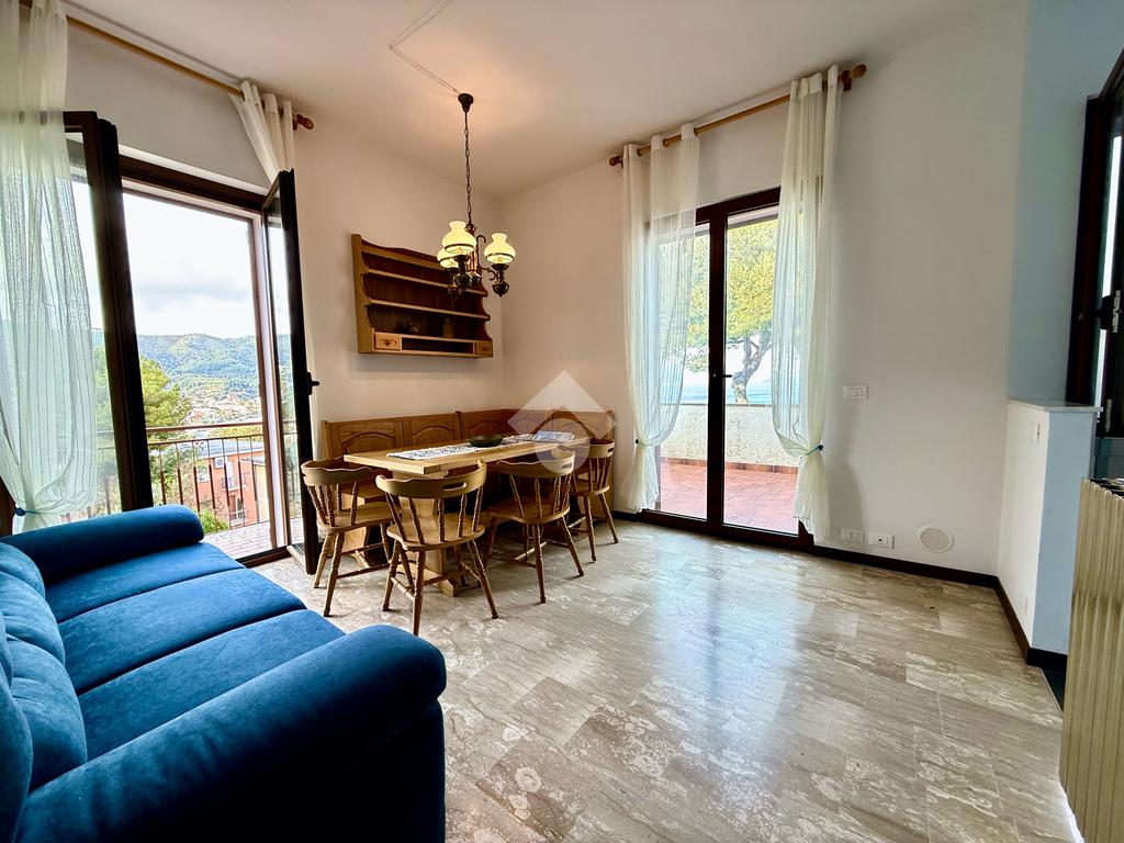 La soluzione presenta un ingresso su disimpegno che conduce all'ampio soggiorno con angolo cottura e sfogo sul terrazzo vista mare esposto a sud/ovest, di seguito troviamo la spaziosa camera da letto matrimoniale e la pratica cameretta entrambe con sfogo sul secondo balcone anch'esso con vista mare.