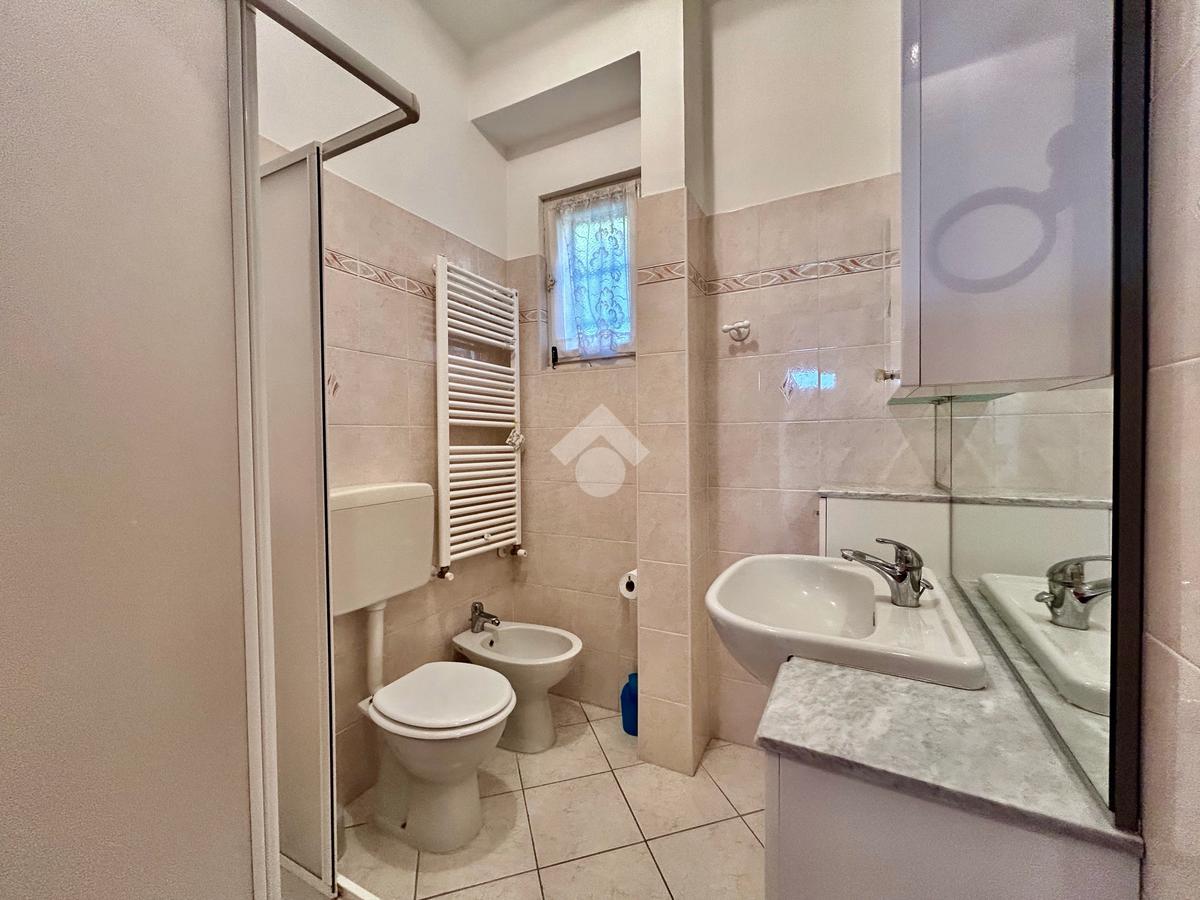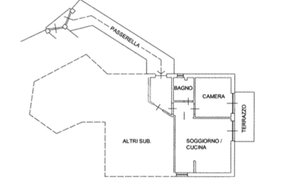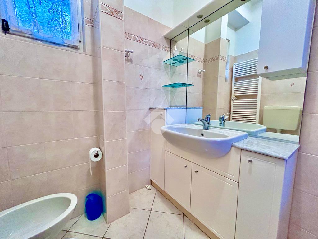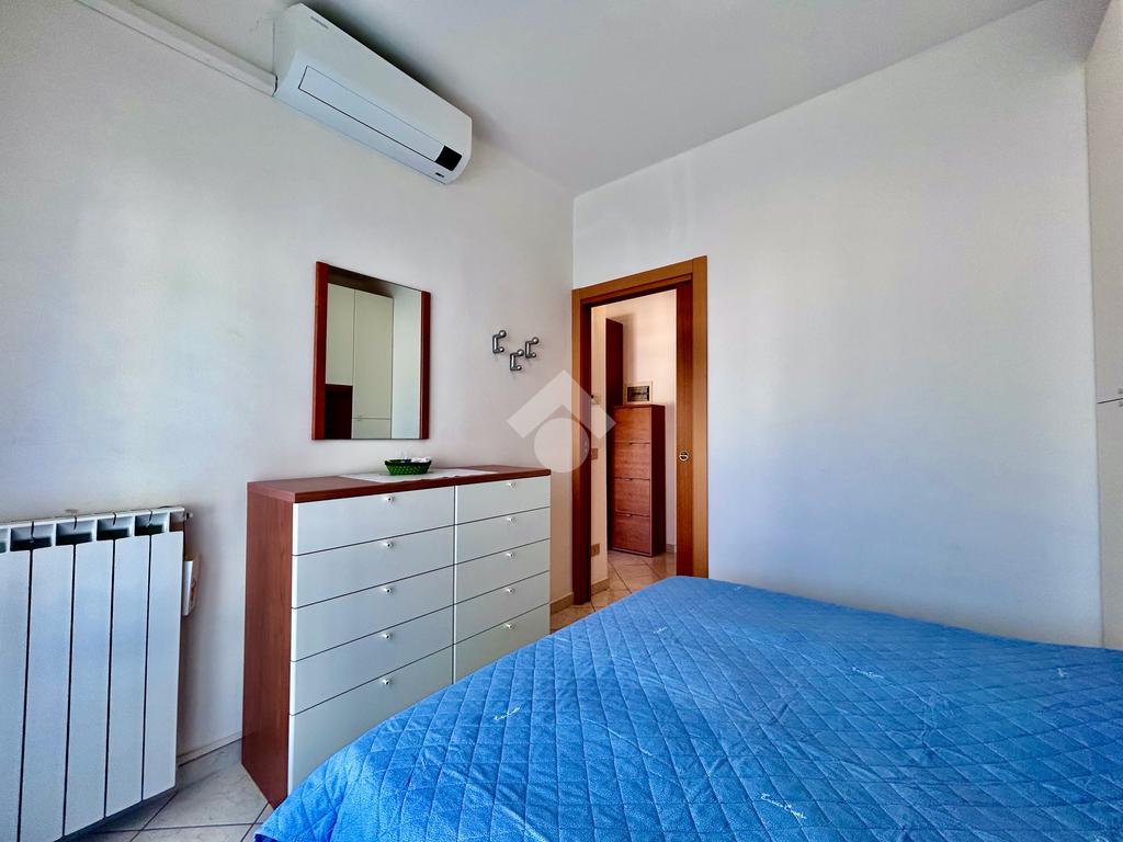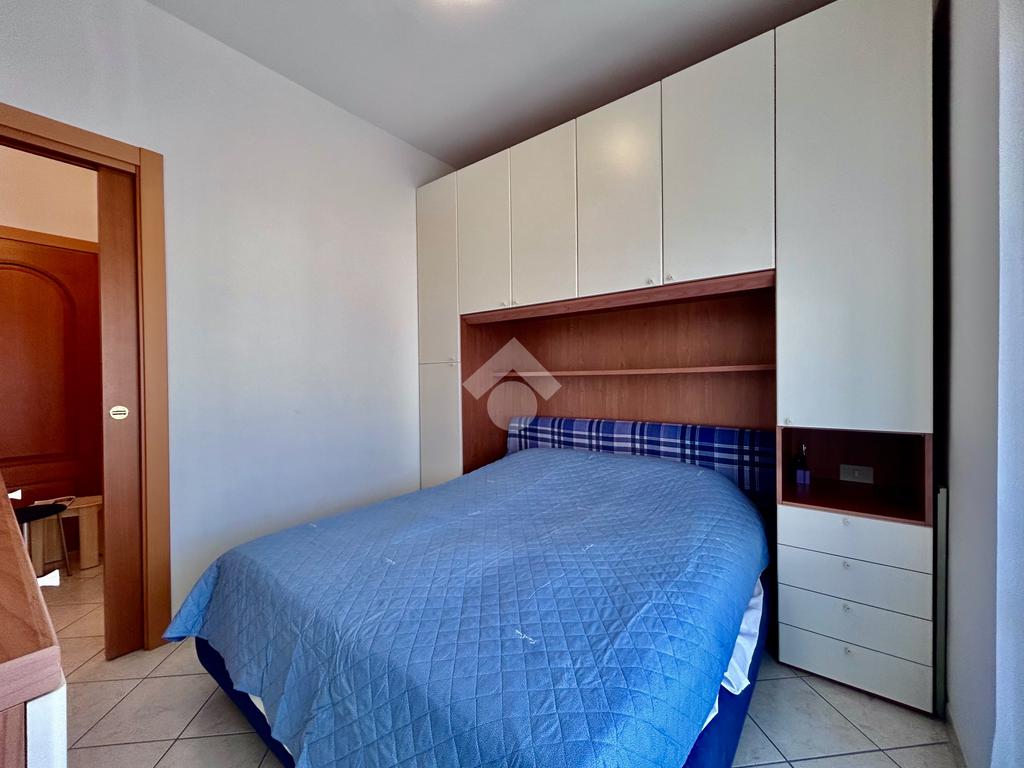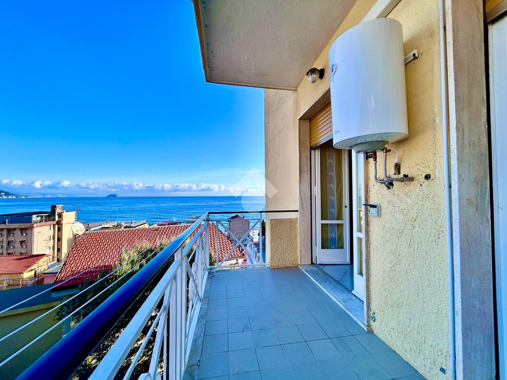 La soluzione presente un'ingresso su disimpegno che conduce alla luminosa zona giorno con angolo cottura e sfogo sul pratico balcone vista mare, di seguito troviamo il bagno finestrato con doccia e la spaziosa comera da letto anch'essa con sfogo sul balcone.