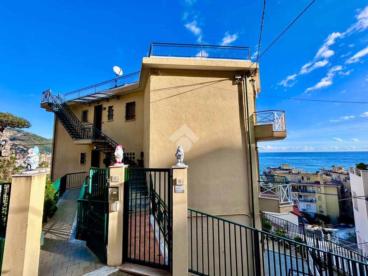 In posizione dominante con vista panoramica sul golfo, bilocale in ottime condizioni a 200metri dalle spiagge.